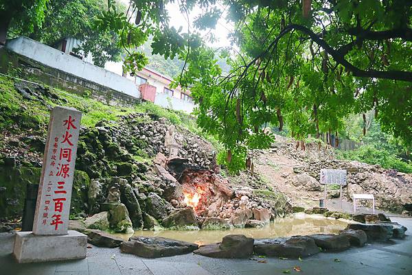 「水火同源」果子想應該是不用特別介紹了吧,這可是無人不知無人不曉的重要景點呢!它目前被列為台灣七景之一,如果有來訪一定要親眼見證一下!不過說真的,為甚麼會「水火同源」,果子還真的是看了簡介才知道,原來是岩壁間噴出天然氣,經過「人工點燃」之後就這樣一直燃燒了300年之久。(果子一開始以為是渾然天成,後來才發現是人為點燃的) 當然,除了現實之外也來講講傳說,還記得文章開頭提到的對聯嗎?關子嶺的歷史跟麒麟很有關係,傳說中這裡就是麒麟頭,因為祂個性很外向所以就喜歡一直噴火讓人欣賞 (太童話的傳說了吧 哈哈) 所以就有了水火同源的景觀!