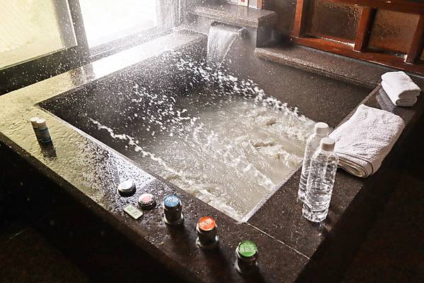 果子體驗飯店的按摩功能真的超強!溫泉注水1/3的時候果子就等不及試按看看 XD 瞬間的水柱果子真的是驚呆了(超強) 不過實際下去泡還滿舒服的,應該是在溫泉中,水柱有被緩衝 ~
