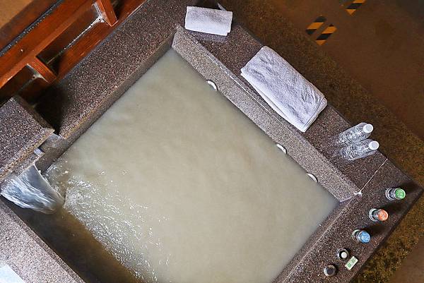 在關子嶺,絕大多數的飯店都有泡湯的設備,有些是獨立出來的,有些是跟房間連在一起。果子這次入住的就是一間房間裡就有私人的泡澡池 也就是住宿隨時想要泡,衣服脫了就可以啦。因為溫泉面窗,所以還可以欣賞老街、山間的風景。不過就是在挑選飯店的時候可以看看照片,如果不是情侶或家人,住像果子這次這種房間,其實泡早起來是有那麼點尷尬啦