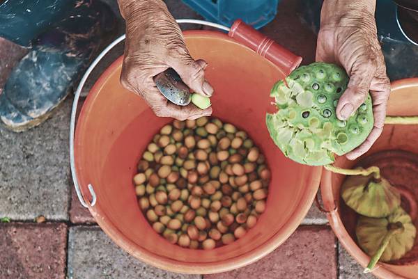而且奶奶還超可愛的一直問我們要不要買蓮子,我們雖然說不用,但她還是很想讓我們看蓮子是怎麼從蓮藕上面取下來 XD 說「來,可以拍照可以拍照」真是超級Q的奶奶