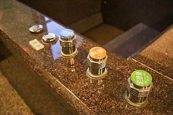 澡池旁邊有一整排的按鈕,分別是「泥漿泉」、「熱泉」、「冷泉」,另外還有按摩的按鈕。因為泥漿泉本身有點燙,所以果子都是混合泥漿泉還有冷泉一起出水,如此一來等到溫泉水半滿時,沖澡後就可以直接進去泡囉!