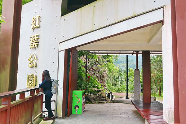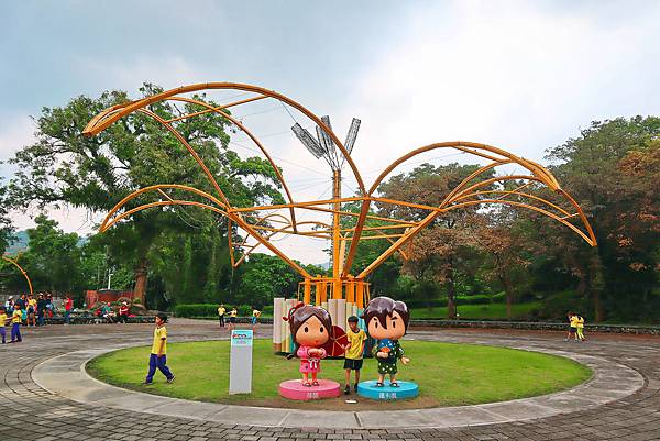在走上紅葉公園的前半段可以看到許多蝴蝶的裝置藝術設計,因為這裡除了有上述歷史,更是台灣「紫斑蝶」生態非常豐富的其中一個點,聽說最多可以看到一百種以上不同品種的蝴蝶呦!不過果子跟Mia不知道為甚麼都很怕蝴蝶,所以前半段真的完全是用衝的上來,好像蝴蝶會咬人一樣 XD (不誇張,從溫泉老街的入口走上來,真的是整個步道充滿蝴蝶啊