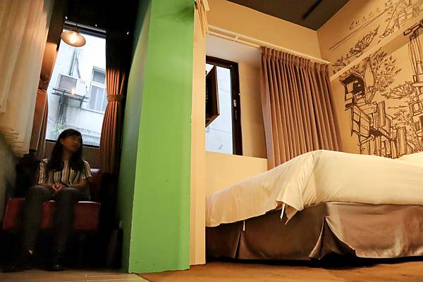 雙人床旁邊就是窗戶,可以讓自然光透進來,很溫暖愜意。另外,除了房間主空間外,還有一個小小的附空間,可以坐在沙發上讀書或是發呆,果子很喜歡這種小空間的設計,像是清大的圖書館有發呆區果子就喜歡偶爾去那裡坐著想事情、看看窗外 ~
