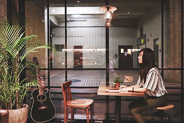 窗、吉他、綠色植物,望著橫豎隔出的透明玻璃外的街道,好像就這樣望著望著待一整夜