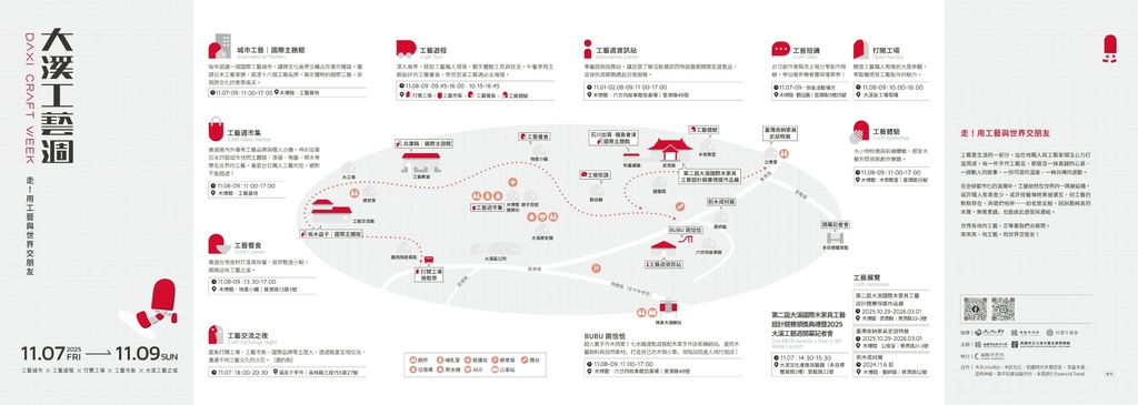 整個行程都有規劃接駁車服務,讓遊客能夠輕鬆直抵隱藏在老城區和郊區的工藝工場;在整個活動期間,大溪木藝生態博物館群的物產小舖、工藝基地等場館,也同步提供多樣化的在地特色物產、工藝聯名商品和文創周邊,這讓遊客能在行程之餘,自由地選購!