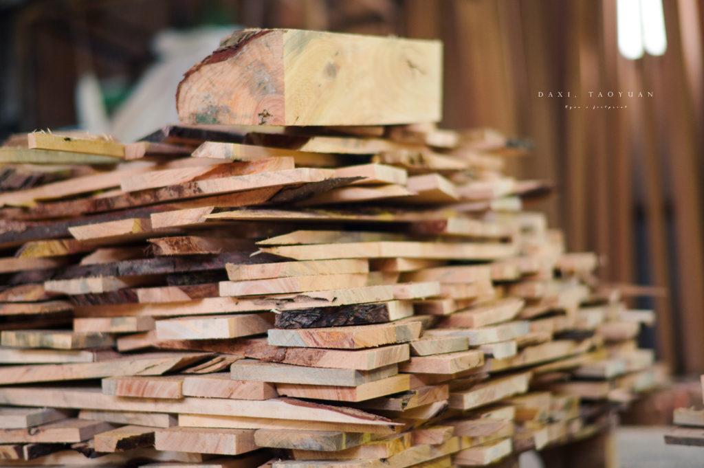 然而,隨著臺灣本土森林政策的調整,添富木業如今所處理的原木,大多已轉向依賴國際市場的進口,其中包括來自東南亞地區的紅木和柚木等質美堅硬的材種,正是大溪高級家具能夠維持其聲譽的重要原材料。在經過添富的初步加工後,這些板材才能分送到下游的家具廠、神桌店或獨立工作室,進行進一步的乾燥、選材和精製。
